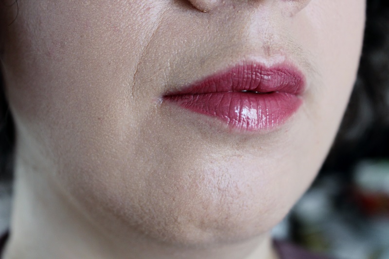 Côté application c’est très simple. Dans un premier temps, on applique la couleur. Une fine couche suffit pour recouvrir complétement la couleur naturelle des lèvres. A cette étape, ce n’est pas très agréable. J’ai les lèvres qui collent.
