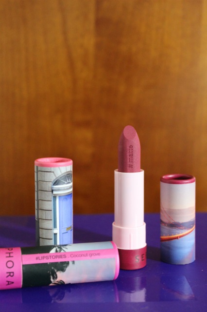 Sephora a lancé il y a quelques semaines (je devrais plutôt dire quelques mois) les lip Stories, une collection de rouges à lèvres déclinée en trois finis (mat, métal et crème) au top. Je m’en suis procurée trois pour voir, un dans chaque fini. J’ai choisi Golden Gate (mat), Coconut grove (métal) et Buzz me (crème).